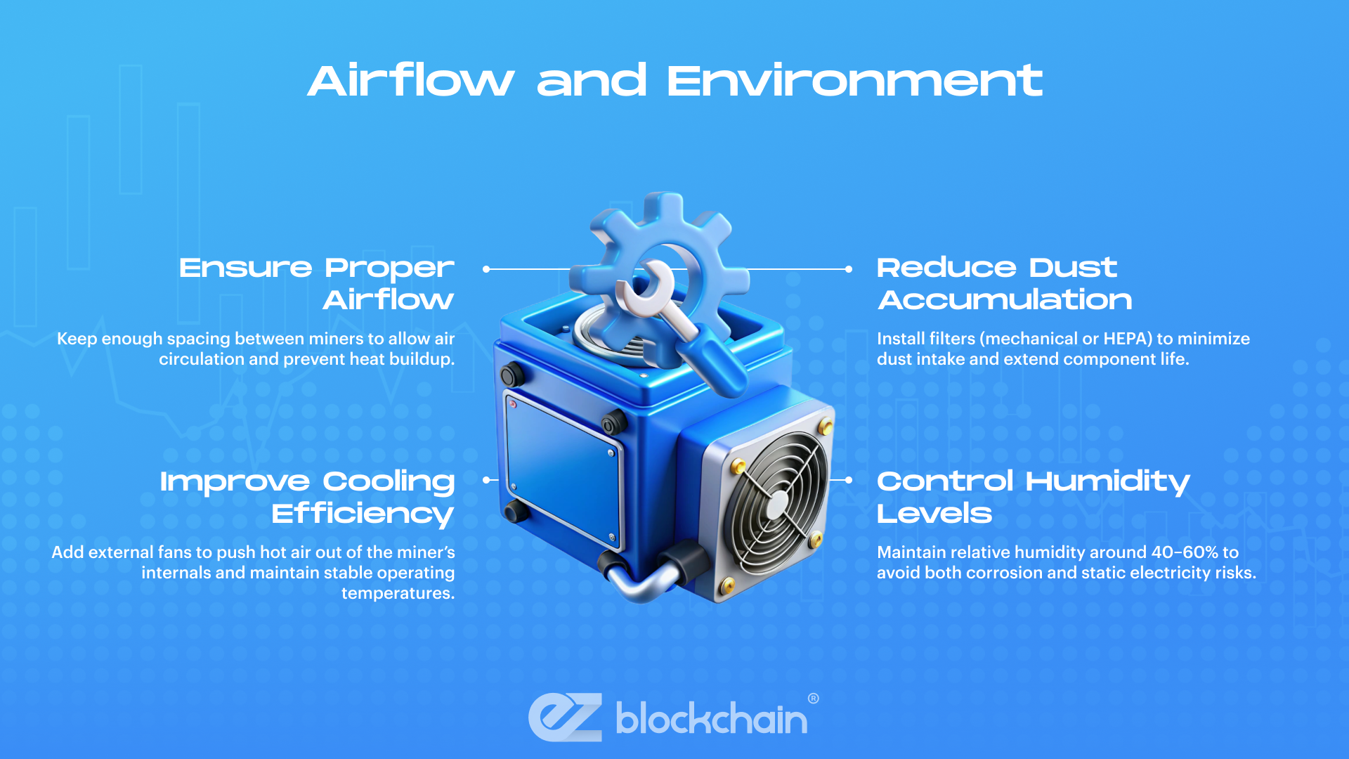 Need assistance maintaining an ASIC for its maximum longevity? Turn to EZ Blockchain for guidance, purchase of the best ASICs, and hosting of cost-efficient mining operations.