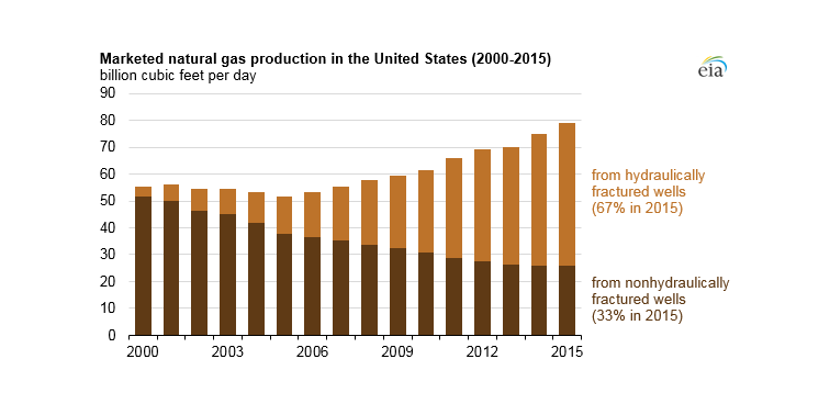 What percentage of natural gas comes from fracking?